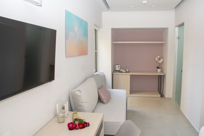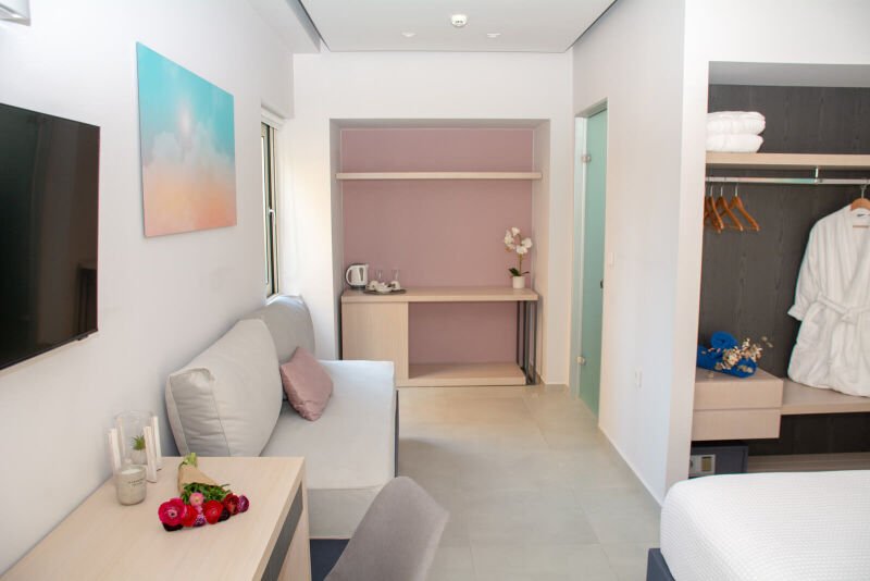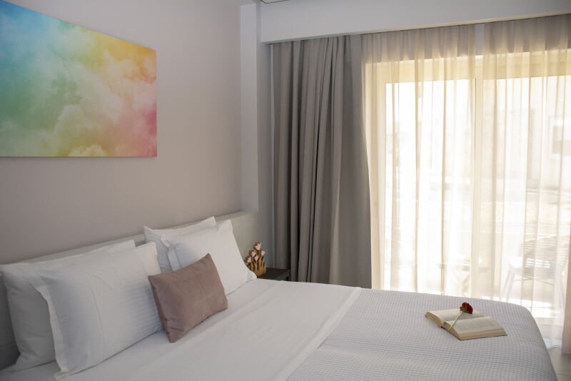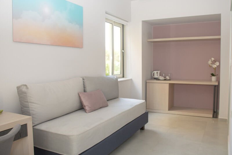 Discover the cozy charm of our “Double Room Below Ground” at Melina Boutique Hotel. Designed for comfort, this 27sqm space is perfect for two guests seeking a relaxing retreat. The room features a luxurious queen-size bed, ensuring a restful night’s sleep. Wake up to the serene view of the pool, a vista that invites tranquility into your stay. Whether you’re here for leisure or a romantic getaway, this room promises an intimate and peaceful experience beneath the vibrant life of Platanias.