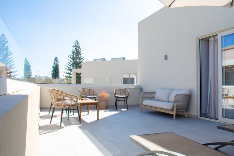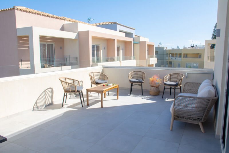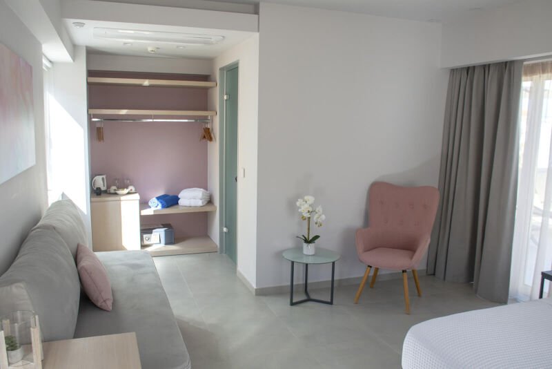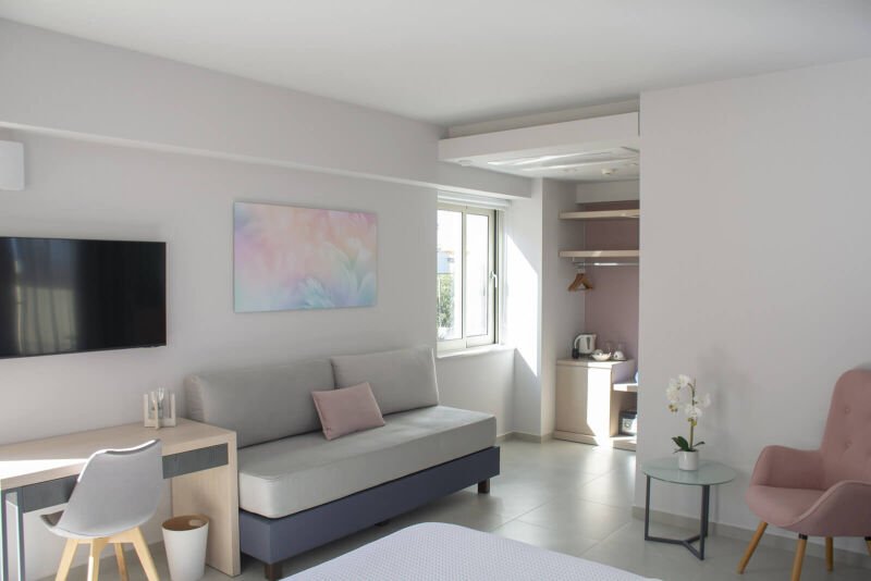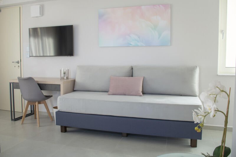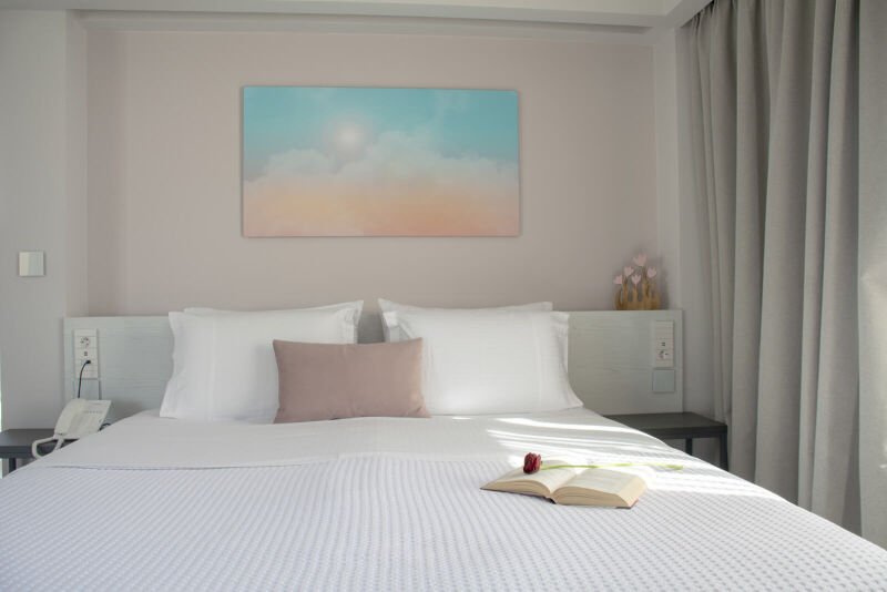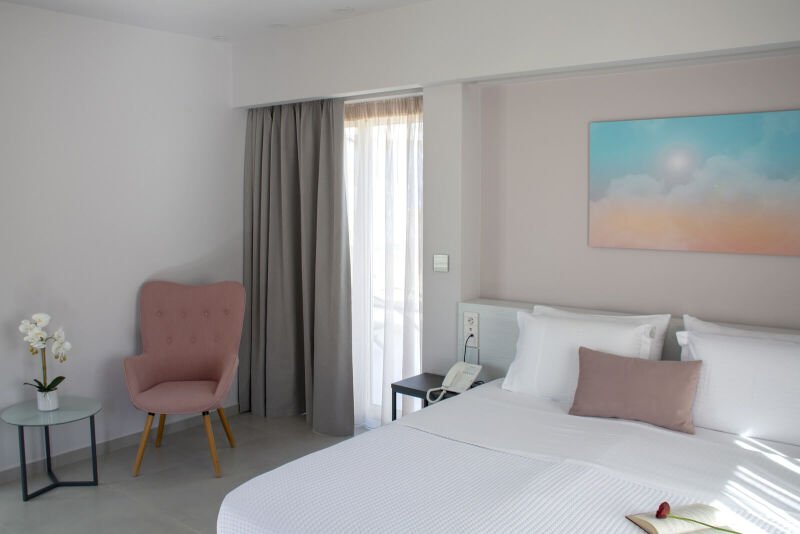 Embrace the elegance of our “Double Room with Large Terrace Sea View” at Melina Boutique Hotel. This 27sqm sanctuary is perfectly tailored for two guests, offering a plush queen-size bed for ultimate relaxation. The highlight of the room is the expansive terrace, where you can bask in the breathtaking sea views and let the gentle sea breeze soothe your senses. Ideal for those who appreciate the finer details, this room provides a picturesque backdrop for a serene and luxurious escape in Platanias.