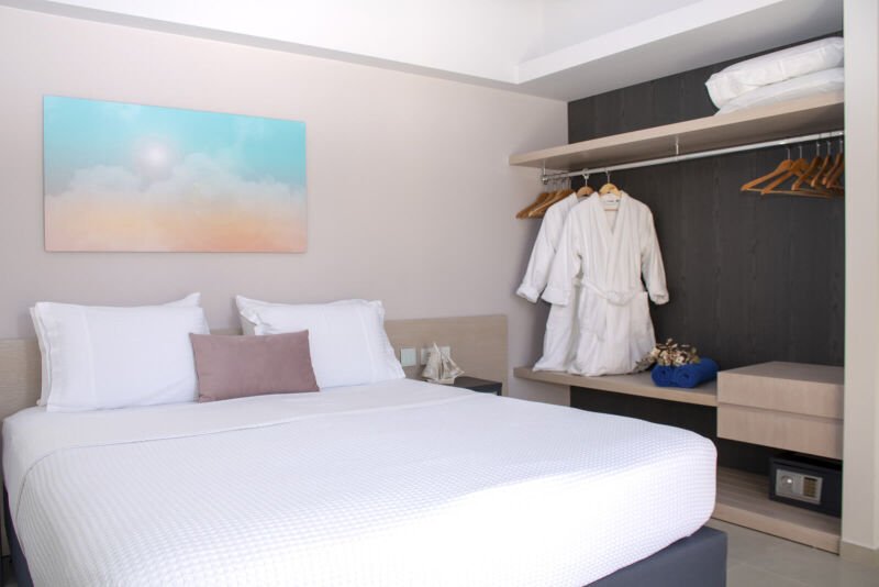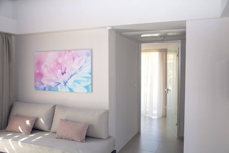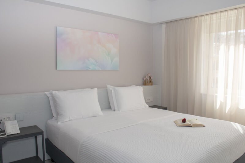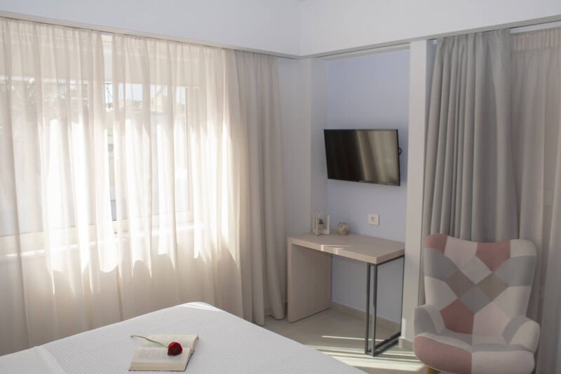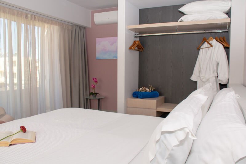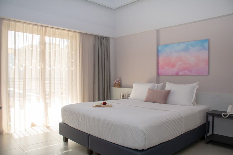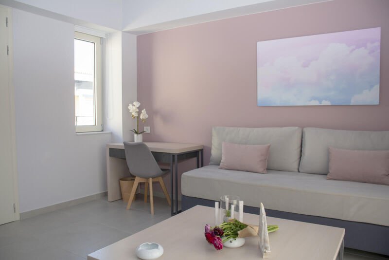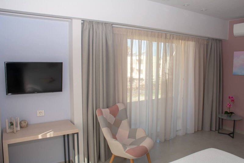 Experience the spacious luxury of our “Suite with Balcony” at Melina Boutique Hotel, designed to comfortably accommodate up to four guests. This 50sqm suite features a cozy queen-size bed and two inviting sofa beds, making it an ideal choice for groups. The suite’s balcony presents a stunning partial view of the sea, offering a serene setting to unwind and enjoy the beauty of Platanias. Whether you’re here to relax or explore, this suite provides the perfect blend of comfort and elegance for your stay.